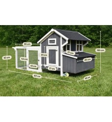 S tímto kurníkem máte maximální flexibilitu, můžete tak slepice přesouvat do stínu na písek nebo jen na čerstvou trávu. Domek obsahuje dvě rampy, kterou se dostanete jak do výběhu tak na volnou pastvu. V domečku jsou dvě řady hřadel a vysouvací pozinkovaný šuplík. Hnízdící box obsahuje 3 samostatné oddělené snůšky. Výběr vajíček a čištění je zajištěno pomocí otevírací střechy u hnízdícího boxu. Venkovní výběh má samostatná dvířka.
