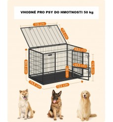 Rozteč mříží je 3,7 x 10,5cm. Velikost boxu ,,XXL" je ideální volbou pro zvíře do 50kg. Vhodný je například na: Zlatý Retrívr, Aljašský Malamut a další podobné velikosti.