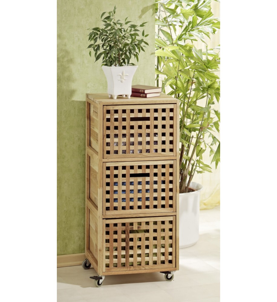 LEHCE POŠKOZENO - elegantní skříňka, rolovací kontejner na kolečkách se třemi šuplíky vyrobená z masivního naolejovaného ořechového dřeva. Velmi pěkný a designový kousek do vašeho interiéru - provedení v elegantním designu mřížky zaručuje dobré větrání. Univerzální provedení, hodí se do koupelny, obývacího pokoje, kanceláře, dětského pokoje a dalších místností v bytě či domě. 3 úložné vysouvací přihrádky, které poskytují dostatek prostoru. Tato pevná skřínka je velmi praktickým kusem nábytku, který vás zbaví rozházených věcí v místnostech.