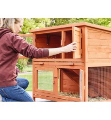 Dvoje dveře ve výběhu zajištují, že budete mít přístup do každého rohu. Do domečku vede široká dřevěná rampa, která lze uzavřít například na noc aby byla vaše zvířata v bezpečí a teple. Domeček má také dvoje otevírací dvířka a také otevírací střechu, lehce se tak dostanete do každého koutu.