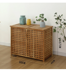 2 790,00 CZK 4 890,00 CZKVeľký dvojitý kôš na bielizeň z masívneho olejovaného orechového dreva s vnútornou plátennou vložkou. Vo veľmi peknom sofistikovanom elegantnom mriežkovom dizajne. Rozmery: šírka 88 cm, hĺbka 46 cm, výška 67 cm.
