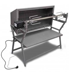15 990,00 CZK 23 890,00 CZKElektrický gril s bočnou grilovacou doskou a grilovacou ihlou - spodné výhrevné teleso. Na drevo, drevené uhlie a brikety. Pripojenie do zásuvky 220 V. Maximálne zaťaženie ihly mäsom je 40 kg, výkon motora je 70 kg. Nastaviteľná výška v štyroch polohách. Rozmery: šírka 152 cm, hĺbka 58 cm, výška 98 cm.