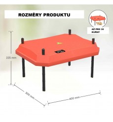 Doska je výškovo nastaviteľná, čo umožňuje jej prispôsobenie rôznym typom hydiny vrátane kurčiat, prepelíc a iných druhov zvierat. Nastavením ideálnej výšky im môžete zabezpečiť optimálnu klímu a chov. Vďaka integrovanému 30W regulátoru teploty od 10 do70 °C je ohrievacia doska mimoriadne energeticky účinná, čo je nielen ekologické, ale znižuje aj vaše náklady na energiu.