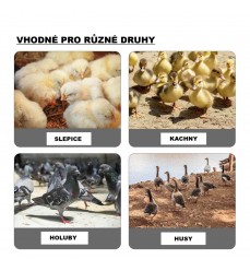- vhodné pre kurčatá, kačice, holuby, husi, prepelice a iné