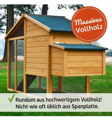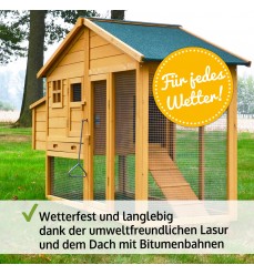 Kvalitný kurník s výbehom môže slúžiť aj ako králikáreň. Je vyrobená z masívneho borovicového dreva a natretá farbou odolnou voči poveternostným vplyvom.