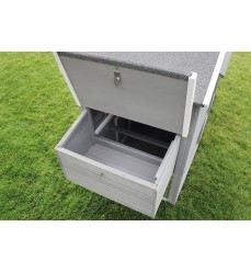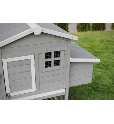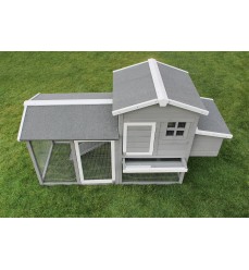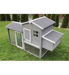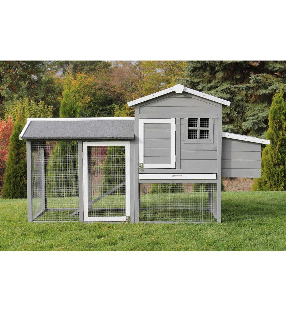Krásny kurník pre 5 - 6 sliepok je vyrobený z masívneho borovicového dreva a ošetrený farbou odolnou voči poveternostným vplyvom a šetrnou k životnému prostrediu. Poskytuje zvieratám dobré životné podmienky s dostatkom pohybu a čerstvého vzduchu. Dokonalý dizajn a premyslená funkčnosť vám uľahčia každodenný chov zvierat. Veľké dvere vo výbehu uľahčujú čistenie a sú vybavené pozinkovanou kovovou závorou. Silné pozinkované pletivo chráni pred dravcami, ako sú kuny, dravé vtáky a líšky. Čistenie kurína je dôležité, preto je vybavený výsuvnou kovovou zásuvkou na trus, ktorú možno ľahko vytiahnuť a vyčistiť. Strecha je vybavená kvalitnými šindľami proti vode, vlhkosti a krupobitiu. Domáce zvieratá vstupujú do kurína cez rampu a pri vchode sú posuvné dvere, ktoré sa dajú v noci zavrieť kvôli chladu a ochrane pred dravcami. Vajíčka sa ľahko vyberajú otvorením strechy boxu na znášanie vajec. Tá sa dá tiež ľahko vyčistiť.