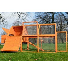 Celý kurník je vyrobený z masívneho borovicového dreva a ošetrený ekologickým náterom odolným voči poveternostným vplyvom s dlhou životnosťou. Montáž je rýchla a jednoduchá vďaka obrázkovému návodu na zostavenie. Tento veľký, krásny kurník vám prinesie radosť a dodáva sa rozložený v dvoch kartónových škatuliach. Je možné ho zaslať prostredníctvom prepravnej spoločnosti.