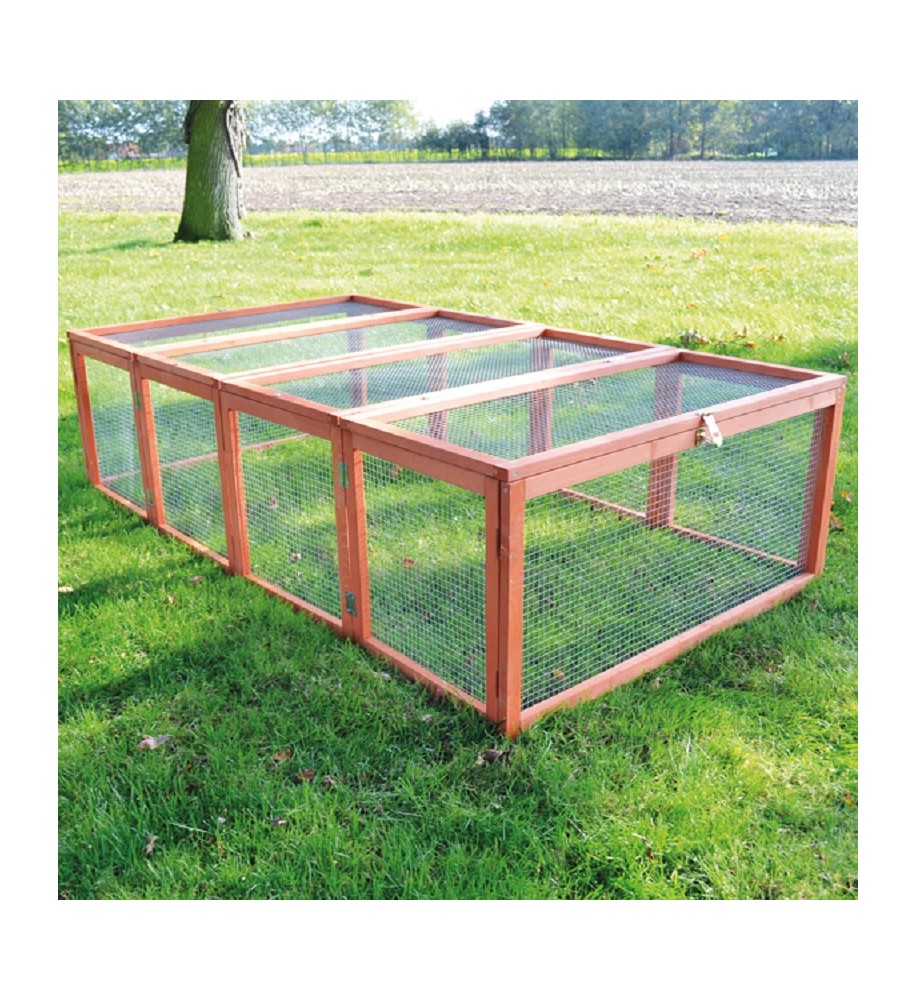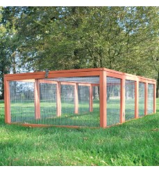 Vysokokvalitný, stabilný a dobre spracovaný multifunkčný výbeh, ktorý je rýchlo zmontovaný a pripravený pre vašu záhradu, aby umožnil voľný pohyb králikov, morčiat, sliepok a iných zvierat. Výbeh sa dá pripojiť aj k rôznym typom kurníkov, čím sa výbeh rozšíri.