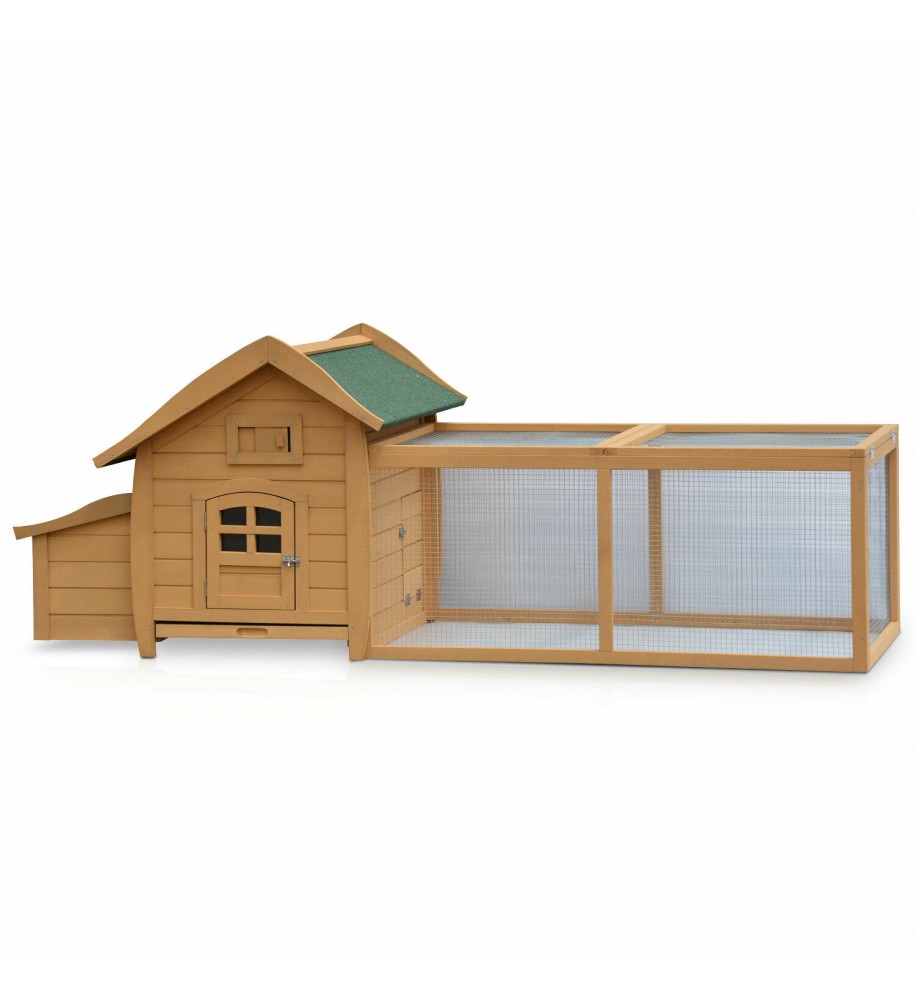 Domček má výsuvnú zásuvku s pozinkovaným plechom, ktorá umožňuje rýchle a pohodlné odstraňovanie trusu. Vaše zvieratá sa môžu do výbehu dostať pomocou sklopnej rampy. V prípade potreby možno rampu sklopiť a domček uzavrieť pred dravcami. Vonkajší priestor ponúka vašim zvieratám dostatok priestoru na voľnú pastvu.