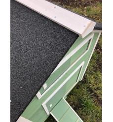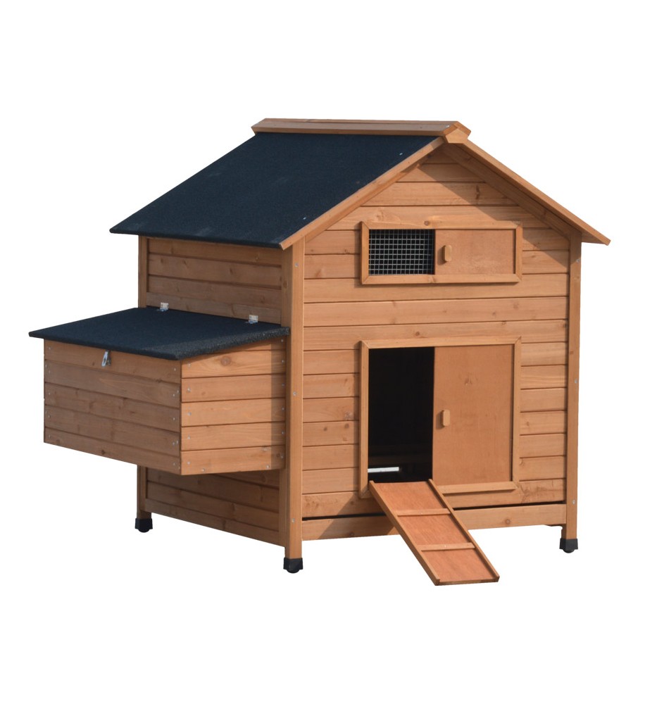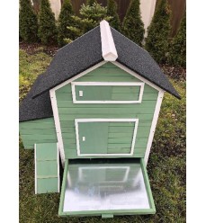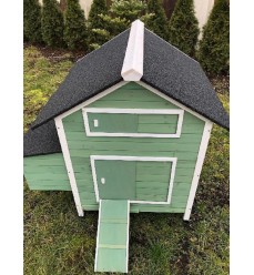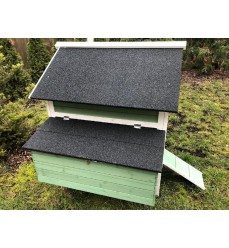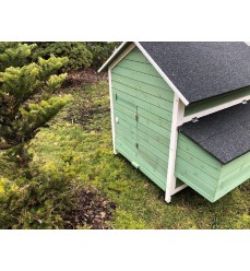 Strecha kurína je vyrobená z kvalitnej asfaltovej lepenky odolnej voči poveternostným vplyvom. Kurník je vyrobený z jedľového dreva spolu s materiálmi odolnými voči poveternostným vplyvom. Stojí na drevených nohách, aby sa zabránilo predčasnému zvetrávaniu zospodu. Sliepky sú tak lepšie chránené pred chladom a mrazom zo zeme. Jeho súčasťou sú aj dva kvalitné oválne kohútiky. Drevo je natreté nezávadným, ekologickým lakom.