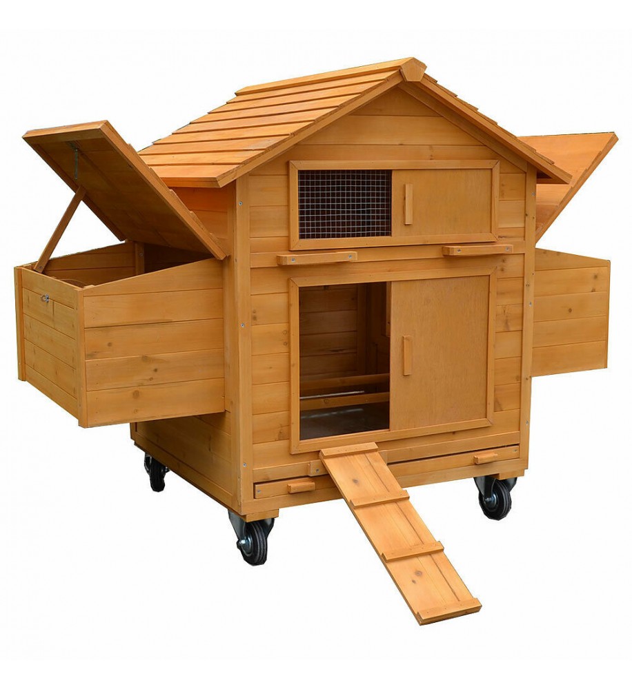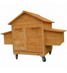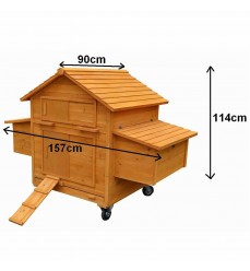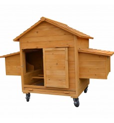 Tento kvalitný kurník sa dá ľahko premiestňovať bez pomoci vďaka namontovaným kolieskam a dvom držadlám na každej strane.
