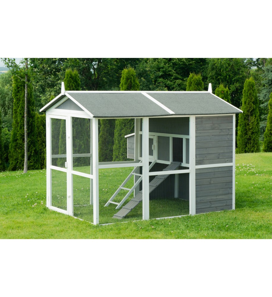 Veľký a vysoký kurník, ktorý ponúka dostatok priestoru a pohodlné riešenie na chov sliepok. V spodnej časti sa nachádza priestranný výbeh. Sliepky sa môžu dostať do horného poschodia pomocou rampy alebo schodíkov. Vhodný pre 8 - 10 sliepok.