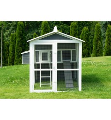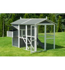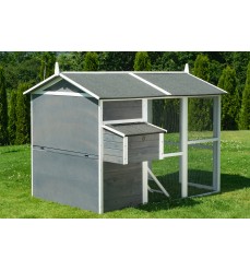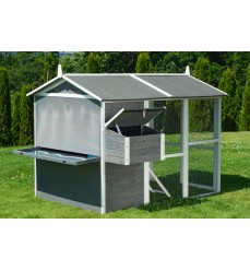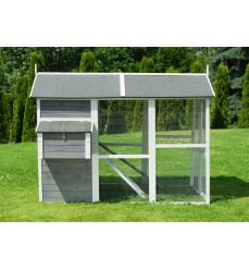 Najväčší kurník v ponuke s priestranným výbehom a možnosťou vstupu dovnútra. Farba sivá. Kurín je vyrobený z jedľového dreva. Rozmery: šírka 195 cm, hĺbka 150 cm, výška 150 cm.