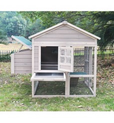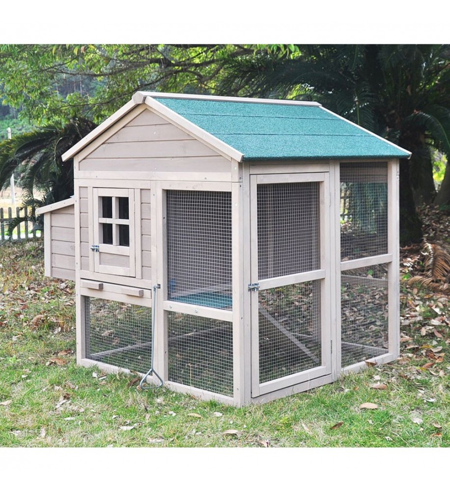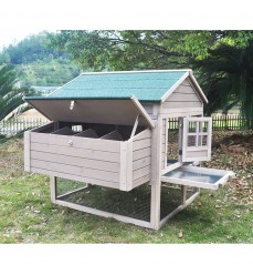 Krásny masívny kurník s výbehom pre 6 - 7 sliepok. Nielenže krásne vyzerá, ale je naozaj dobre vyrobený a premyslený. Priestor pod a na boku kurína slúži ako vonkajší výbeh, kde majú vaše sliepky priestor na pasenie. Vo výbehu sú namontované veľké dvierka, ktorými sa môžete dostať dovnútra a vložiť doň jedlo a pitie. Kurín môžete s pomocou dvoch osôb premiestniť aj na iné miesto v záhrade, kde sa budú čerstvo pásť. Celý kurník nie je pri zemi, ale je vyvýšený, čo je veľkou výhodou na ochranu pred chladom a mrazom zo zeme.