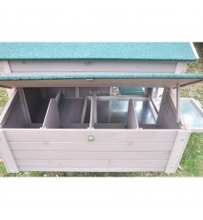 - hniezdna búdka má otváraciu strechu na jednoduchý výber vajec a je rozdelená na 4 samostatné hniezda