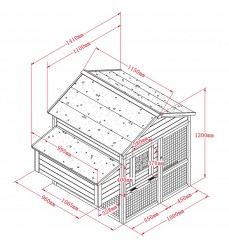 Rozmery kurína: šírka 141 cm, hĺbka 115 cm, výška 120 cm.