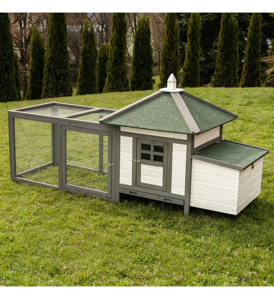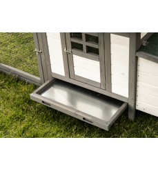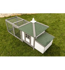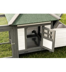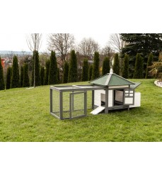 Tento kurník ponúka všetko, čo potrebujete na chov sliepok. Veľká vstavaná voliéra s kvalitným pozinkovaným drôtom. Vhodný pre približne 4 - 5 sliepok.Čistiaca zásuvka - zásuvka s pozinkovaným plechomuľahčuje hygienické čistenie. Zásuvka sa dá ľahko vysunúť z vonkajšej strany. Vo vnútri sa nachádzajú dve hniezda - bidielka, na ktorých môžu sliepky odpočívať a uvelebiť sa. Priestor kurína sa ľahko čistí otvorením predných dvierok. Dvere majú malé okienko vo vidieckom štýle. Jeho súčasťou je aj rampa na prístup do kurína. Celú strechu domčeka možno rýchlo a jednoducho otvoriť a vyčistiť celý kurník alebo sa len dostať dovnútra a chytiť zvieratá, pozri fotografiu.