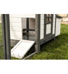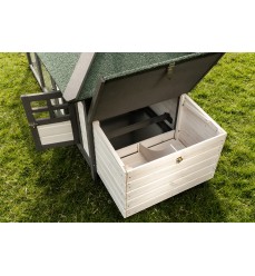 Kvalitný dizajn menšej kurína alebo tiež kačičkárne v sivom prevedení, možno ju použiť aj ako králikáreň.Vyrobená z masívneho borovicového dreva a ošetrená ekologickou farbou odolnou voči poveternostným vplyvom. Okrem toho má kurník veľký hniezdny box s dvoma samostatnými boxmi na znášanie vajec. Hniezdny box má odklápacie veko, takže sa môžete ľahko dostať k zneseným vajciam alebo vyčistiť priestor zvonku. Nový, vyvýšený domček - lepšie chráni pred chladom a mrazom zo zeme.