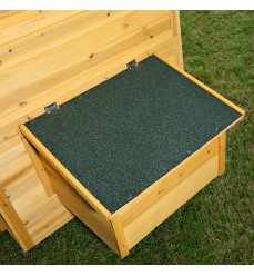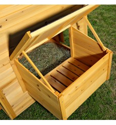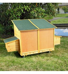 Po celej hĺbke kurína je na oboch stranách hniezdny (znáškový) box. Vaše sliepky tu môžu hniezdiť a znášať vajcia. Nosnice majú sklopné veko, aby sa vajcia dali ľahko vybrať a vyčistiť. V zadnej časti sú dve výsuvné zásuvky na jednoduché čistenie trusu v kurníku. Predná časť kurína je vybavená dvojicou veľkých dvierok, ktoré umožňujú sliepkam vyliezť von. Samozrejme, je možné namontovať automatické otváranie. Celý kurník je vyvýšený, na kolieskach, aby sa zabránilo chladu a mrazu zospodu. Tento model je veľmi stabilný - neprevráti ho ani silný vietor. Ku kurníku je možné dokúpiť výbeh a jednoducho ho k nemu pripevniť (ďalšie položky nájdete na odkazoch nižšie v našom e-shope). Kurník môžu ľahko premiestňovať aj dve osoby.