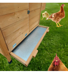 Na jednej strane po celej hĺbke kurína sa nachádza znáškový box, ktorý je rozdelený na tri samostatné znáškové hniezda, kde sa sliepky môžu striedať v hniezdení a znášaní vajec. Hniezdny box je výklopný, čo uľahčuje výber vajec aj čistenie. V prednej časti je posuvný uzatvárateľný vetrací otvor, ktorý zabezpečuje nepretržitý prísun čerstvého vzduchu. V spodnej časti nájdete aj výsuvnú zásuvku na trus s pozinkovaným plechom na jednoduché a hygienické čistenie. Mriežku na trus možno vytiahnuť dozadu aj dopredu a čistiť ju zvonku. Predná a zadná strana obsahuje dvierka, cez ktoré môžu sliepky vyliezť von, buď na voľný výbeh do záhrady, alebo do výbehu, ktorý si môžete kúpiť (alebo vyrobiť vlastný). Kurník obsahuje rampu, ktorú tu umiestnite na ľubovoľnú stranu kurína, kde ju potrebujete.