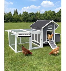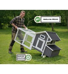S týmto kurníkom máte maximálnu flexibilitu, takže môžete sliepky premiestniť do tieňa na piesok alebo len na čerstvú trávu. Súčasťou kurína je rampa, po ktorej sa sliepky dostanú do kurína. Vchod sa uzatvára plátkom z vonkajšej strany, (takže nemusíte liezť do kurína, aby ste na noc uzavreli vchod pred dravcami). V domčeku sa nachádzajú dva rady kohútikov a výsuvná pozinkovaná zásuvka. Hniezdna búdka obsahuje dve samostatné hniezdne búdky. Výber vajec a ich čistenie zabezpečuje otváracia strecha hniezdnej búdky. Vonkajší výbeh má veľké dvere, ktoré umožňujú ľahký vstup alebo otvorenie, aby si zvieratá mohli užívať otvorenú záhradu.