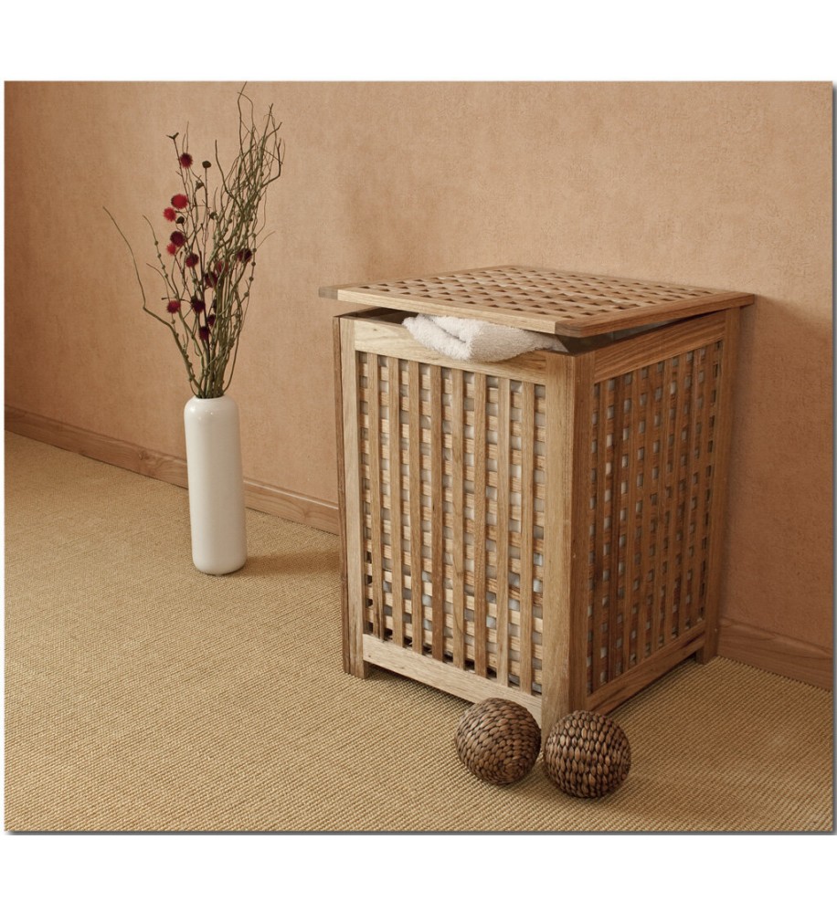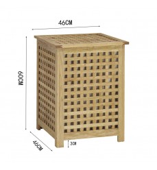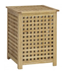 Kôš na bielizeň z masívneho olejovaného orechového dreva s vnútornou plátennou vložkou. Vo veľmi peknom sofistikovanom elegantnom dizajne mriežky. Rozmery: šírka 42 cm, hĺbka 42 cm, výška 60 cm.