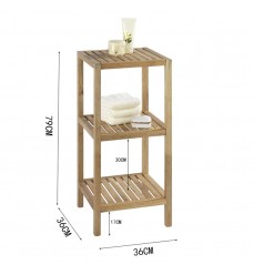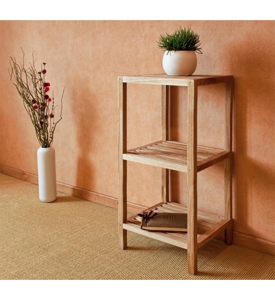3 police z masívneho olejovaného orechového dreva. Vo veľmi peknom sofistikovanom elegantnom dizajne. Rozmery: šírka 36 cm, hĺbka 36 cm, výška 79 cm. Ideálny do kúpeľne, spálne, kuchyne a predsiene.