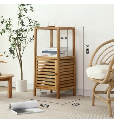 Skriňa z masívneho olejovaného orechového dreva. Vo veľmi peknom sofistikovanom elegantnom dizajne vhodná do kúpeľne, predsiene, spálne a iných miestností. 1 polica otvorená a 1x polica uzatvárateľná. Rozmery: šírka 40 cm, hĺbka 40 cm, výška 89 cm.