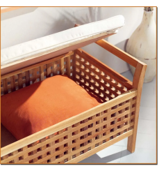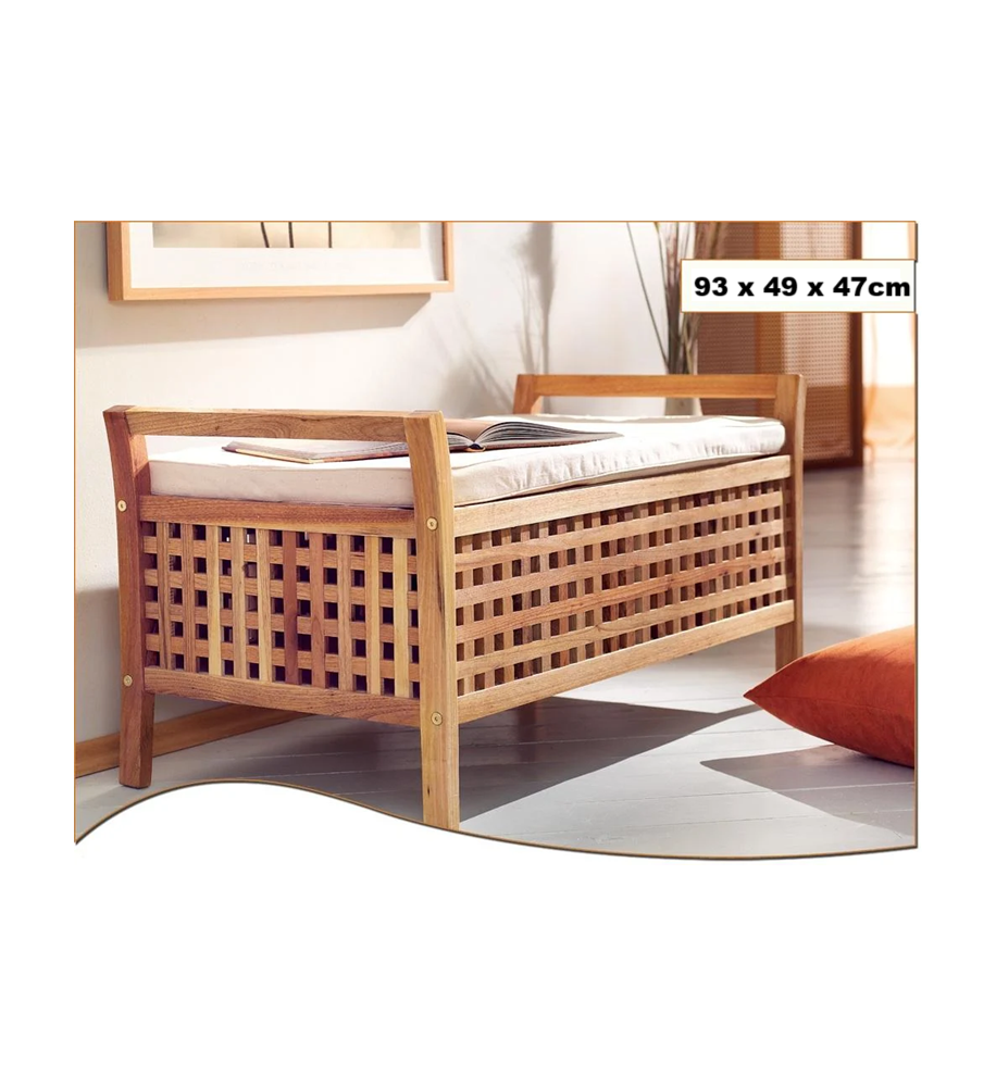 Lavica z masívneho orechového dreva s úložným priestorom a vankúšom na sedenie. Rozmery: 93x49x47 cm.