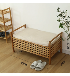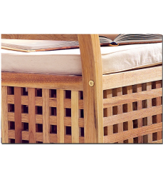 Elegantná lavica s úložným priestorom, vyrobená z masívneho olejovaného orechového dreva. Veľmi pekný a dizajnový kúsok do vášho interiéru. Táto masívna lavica je vhodná do kúpeľne, spálne, kuchyne, predsiene a obývačky. Veľmi praktický nábytok, dá sa použiť aj ako kôš na bielizeň. Odnímateľný prateľný sedací vankúš z čistej bavlny, poťah je snímateľný a možno ho prať pri 30 °C.