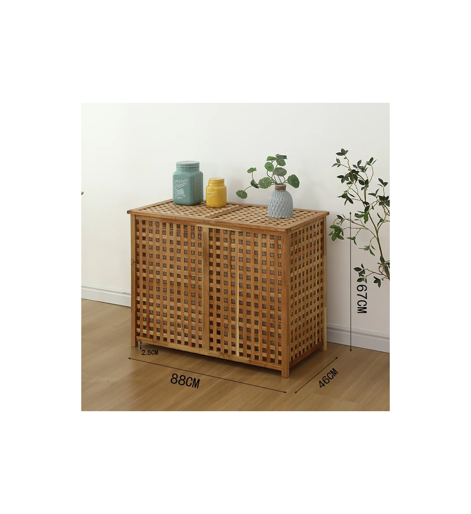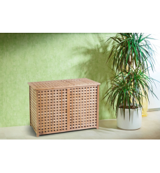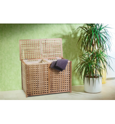 Veľký dvojitý kôš na bielizeň z masívneho olejovaného orechového dreva s vnútornou plátennou vložkou. Vo veľmi peknom sofistikovanom elegantnom mriežkovom dizajne. Rozmery: šírka 88 cm, hĺbka 46 cm, výška 67 cm.