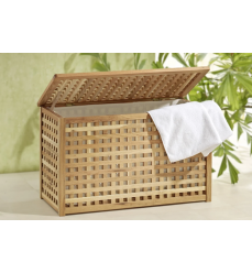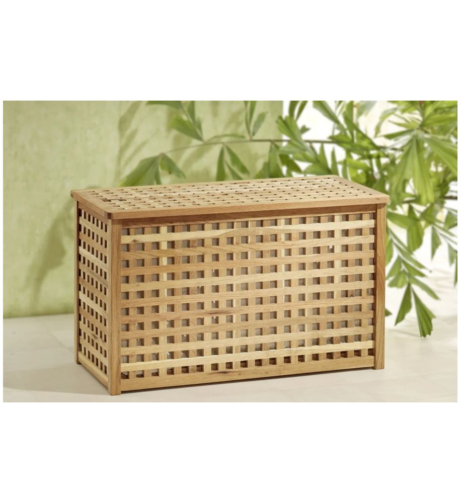 Veľký kôš na bielizeň, truhlica alebo komoda z masívneho olejovaného orechového dreva s vnútornou vložkou na bielizeň. Vo veľmi peknom sofistikovanom elegantnom mriežkovom dizajne. Rozmery: šírka 78 cm, hĺbka 38 cm, výška 47 cm.