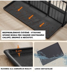 Domáca ohrádka - bezpečná klietka bez ostrých hrán. Veľkosť "XXL-2" je ideálna pre zvieratá do 50 kg. Veľké otváracie predné dvierka s dvoma západkami . Jednoduché a hygienické čistenie vďaka výsuvnej plastovej podlahe. Vyrobené v Nemecku !