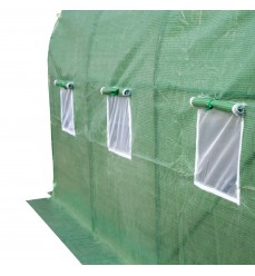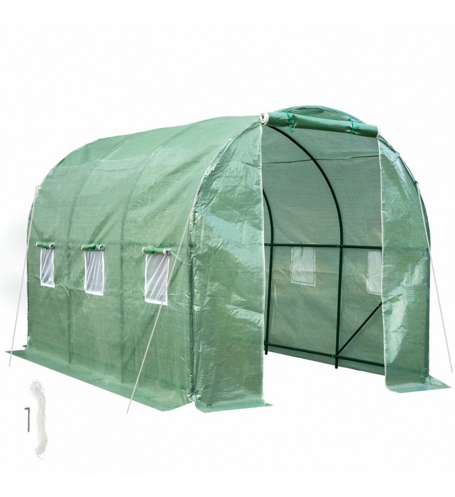 Chcete ochrániť svoje rastliny pred rozmarmi počasia a neopatrnou divou zverou. Praktický fóliovník ponúka dostatok priestoru na pestovanie rôznych byliniek, zeleniny a kvetov. Skleník má pevnú kovovú konštrukciu a hrubé zelené plátno. Spoľahlivo ochráni vaše rastliny. Vďaka veľkým dverám môžete do fóliovníka ľahko dostať všetko, čo potrebujete - police, potreby na zalievanie, vozíky na zeminu, náradie a ďalšie potrebné veci. Predné dvere a šesť okien zabezpečujú vynikajúcu cirkuláciu vzduchu a dobré vetranie. Inštalácia je veľmi jednoduchá a domček sa v záhrade alebo na poli postaví za krátky čas, čo platí aj pre jeho následné zloženie. Zaobstarajte si praktický fóliovník do záhrady alebo na pole.
