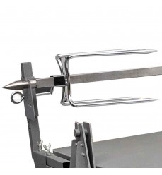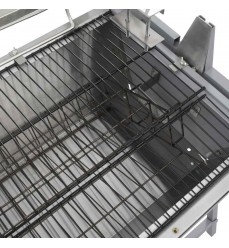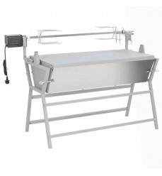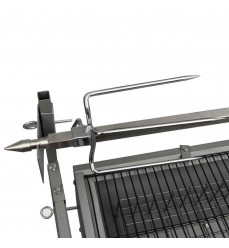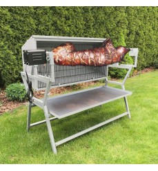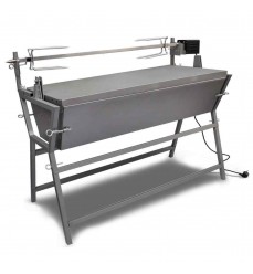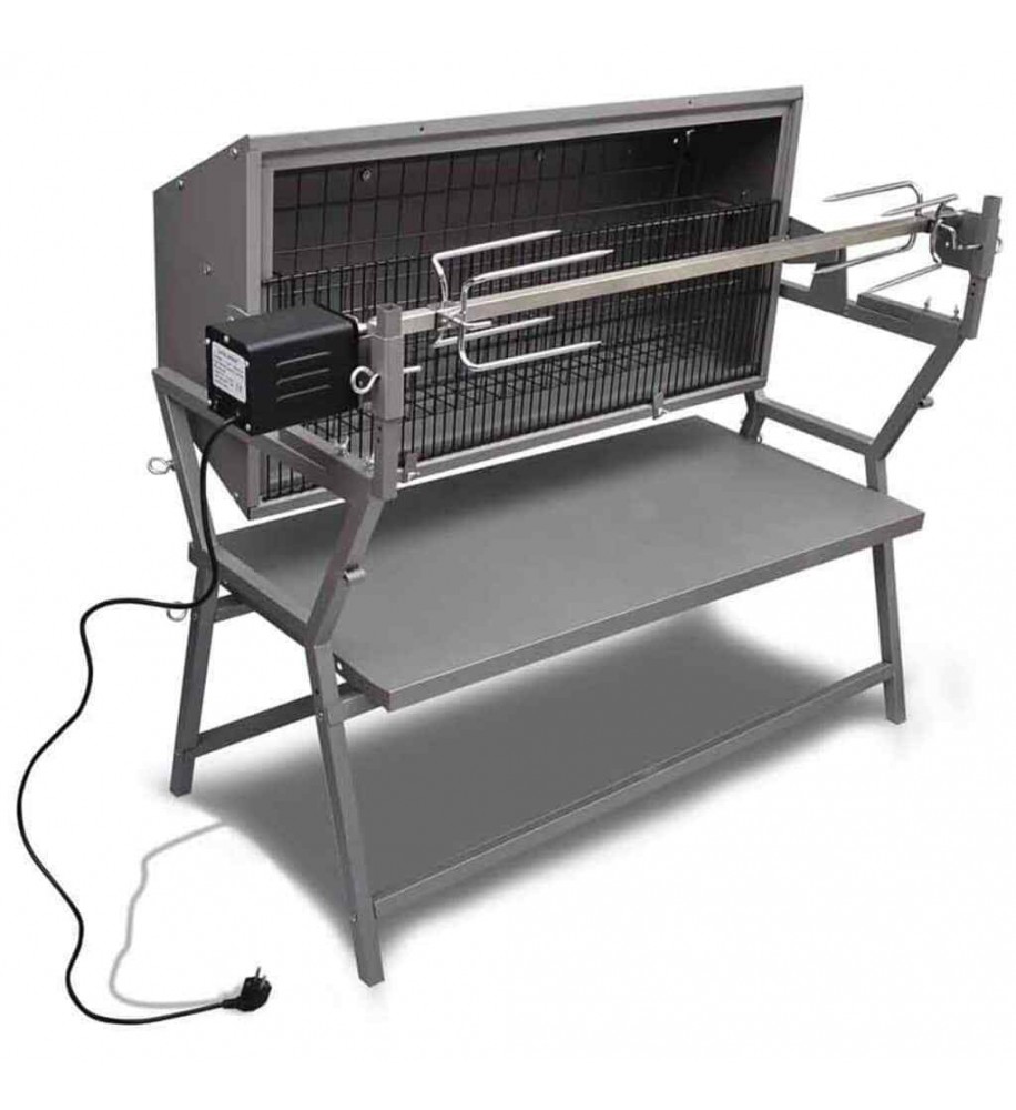 Profesionálny, mobilný, vysokokvalitný gril vyrobený zo žiaruvzdorného plechu a nerezového materiálu. Gril sa používa predovšetkým ako bočný gril s elektrickým ražňom a má polohovateľné zadné alebo spodné ohnisko. Zadná časť je vhodná na grilovanie väčších kusov mäsa, prasiatok, moriek, šuniek, viacerých kurčiat naraz a pod. Gril je možné položiť aj do vodorovnej polohy a používať ho ako bežný gril. Jednoduchá obsluha, montáž a demontáž zaručuje, že si tento gril môžete vziať kamkoľvek so sebou. Stabilná konštrukcia a výkonný motor (torzný) zaisťujú tiché opekanie mäsa s hmotnosťou až do približne 40 kg. Gril stačí zapojiť do zásuvky 220 V. Gril je možné nastaviť do štyroch výšok.