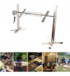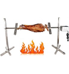 Kvalitný mobilný gril na prasiatka, šunku, morky, kurčatá a špízy. Nastaviteľná výška 38 - 61 cm. Napájanie 220 V, výkon motora (torzný) pre mäso s hmotnosťou do 30 kg. Veľmi kompaktný - mobilný. Rozmery: šírka 159 cm, hĺbka 38 cm, výška 72 cm.