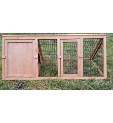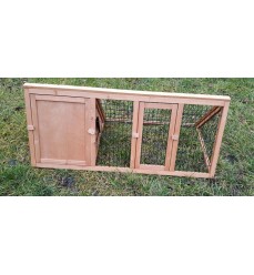 Malá králikáreň vhodná pre malé zakrslé králiky, morčatá, škrečky a iné malé zvieratá. Rozmery: šírka 118 cm, hĺbka 50 cm, výška 45 cm.