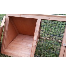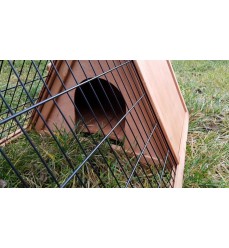 Model je postavený v trojuholníkovom formáte.Králikáreň ponúka priestor na voľný výbeh a vďaka domčeku aj chránený priestor na spanie. Na rýchle a jednoduché čistenie sú na domčeku a výbehu veľké dvere, ktoré sa dajú zatvoriť západkou. Domček má podlahu. Mreže sú pevné a dobre chránia pred dravcami.