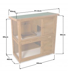 Veľká hnedá masívna králikáreň z borovicového dreva s dvoma výsuvnými zásuvkami, ktoré sa dajú spojiť alebo oddeliť . Rozmery: šírka 92 cm, hĺbka 45 cm, výška 90 cm.