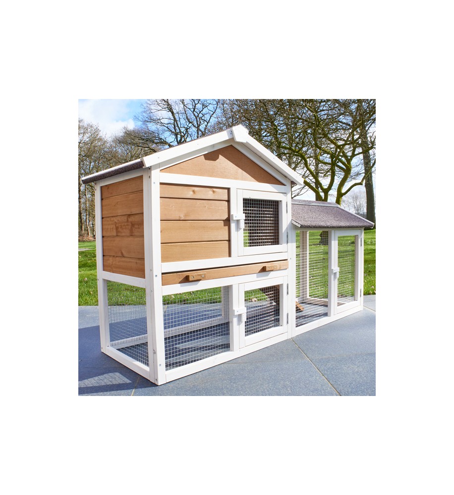 Vaše zvieratá tak môžu odpočívať a spať v útulnom domčeku, kde sú v suchu a bezpečí. Výbeh má dvere z pozinkovaného drôtu, takže majú zaručený pobyt na čerstvom vzduchu, výhľad do exteriéru a prirodzené svetlo.