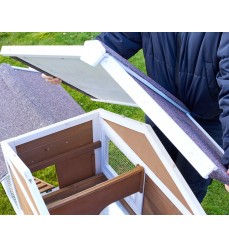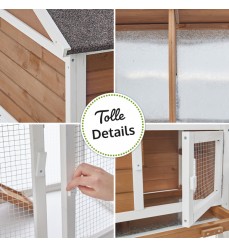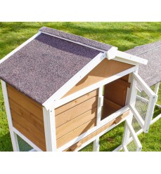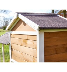 Dvoje dverí vo výbehu vám zabezpečia prístup do každého kúta. Do domčeka vedie široká drevená rampa, ktorú možno v noci uzavrieť posuvnými dverami, aby boli vaše zvieratá v bezpečí a v teple.