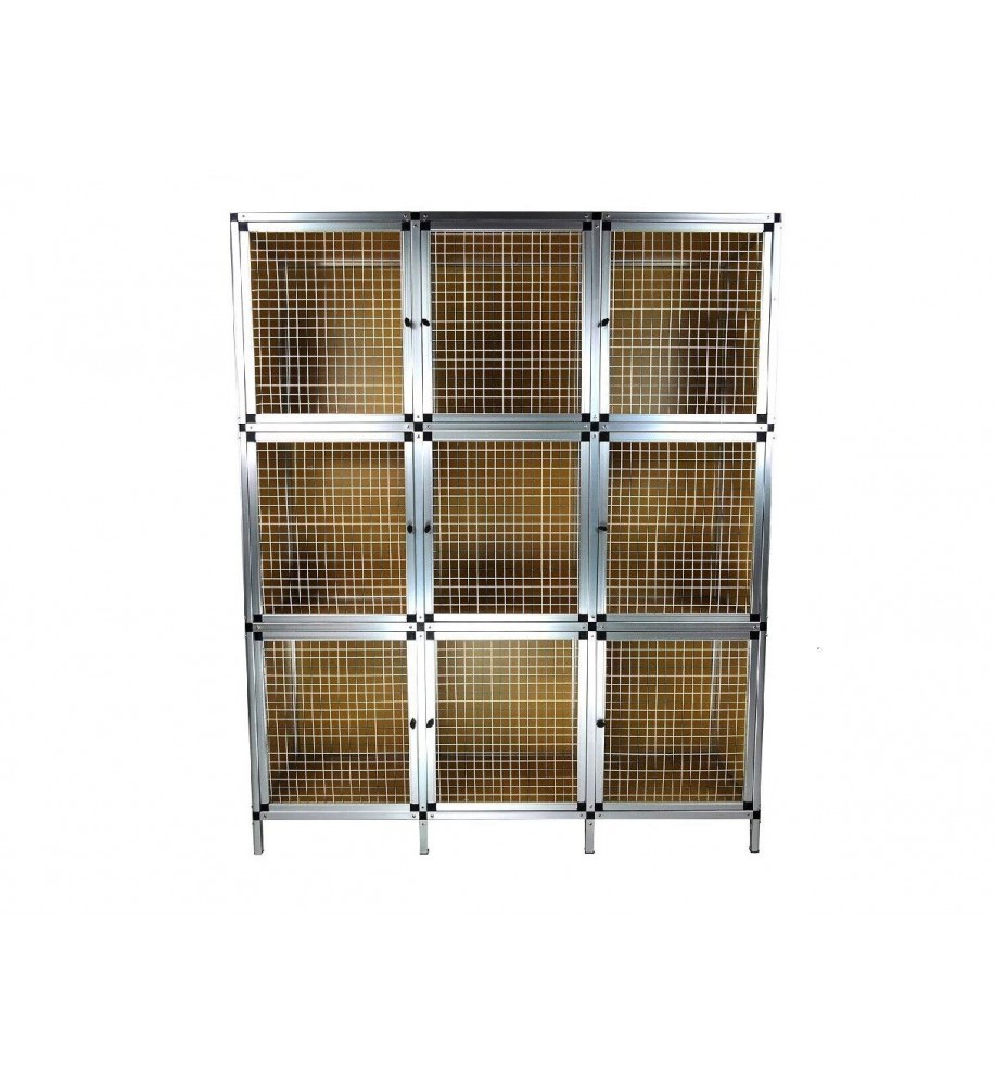 Vysokokvalitná hliníková králikáreň s 9 samostatnými búdami vyrobená z hliníka a HDF dosiek vyrobených v Nemecku. Je veľmi stabilne skonštruovaná. Vyrobená z vysokokvalitných materiálov (hliníkové profily, rošty z nehrdzavejúcej ocele a dosky HDF zaručujú dlhú životnosť). Osvedčená králikáreň, ktorá sa predáva už mnoho rokov, vám zaručí kvalitný chov.