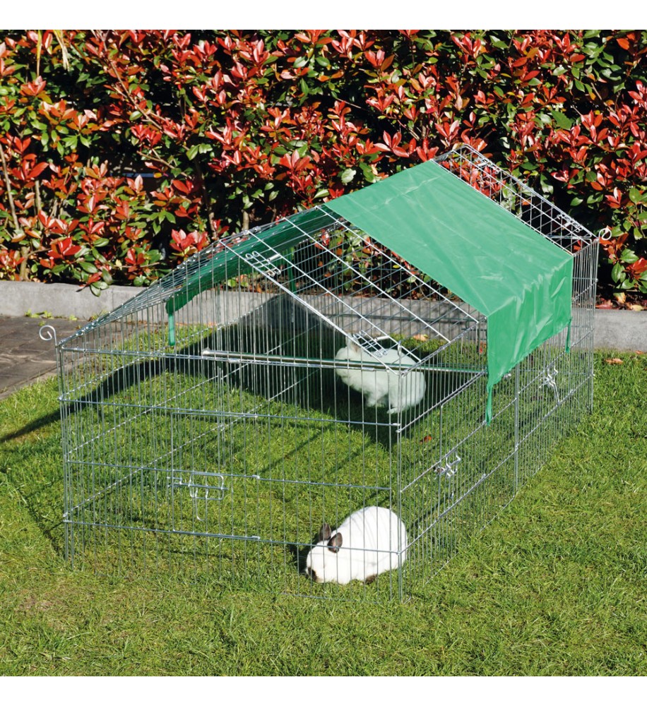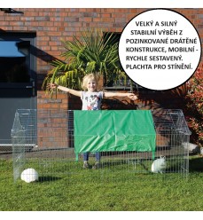 Výbeh má celkom tri otváracie dvierka, ktorými sa dá dostať dovnútra, takže je ľahko prístupný zo všetkých strán. Zvieratá tak môžete ľahko vyviesť von alebo rýchlo a bezpečne vložiť krmivo a vodu. Ponúka dostatok čerstvého vzduchu, slnečného svetla a pokojné pasenie. Zvieratá zostávajú vo svojom prirodzenom prostredí. Ak slnko svieti naozaj silno, môžete použiť plachtu na suchý zips, ktorá je súčasťou balenia - zvieratá sa tak môžu ukryť v tieni.