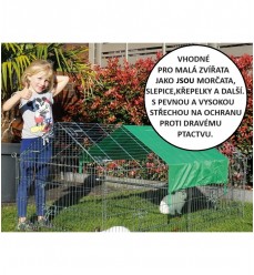 Ohrada je tiež vyrobená so strechou, ktorá je navrhnutá ako sedlová, čím chráni vaše zvieratá pred všetkými predátormi, ktorí by sa mohli chcieť dostať dovnútra. Zároveň zabezpečuje aj to, aby zvieratá nepreliezli - neutiekli. Tieto typy ohrád sú pevné, odolné a ľahké, takže sa dajú ľahko premiestňovať po záhrade, aby mali vaše zvieratá k dispozícii čerstvú trávu. Dajú sa tiež ľahko pripojiť k rôznym typom kurníkov a rozšíriť tak výbeh.