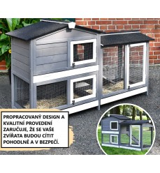 - dizajnová králikáreň s veľkým vonkajším výbehom v sivej a bielej farbe