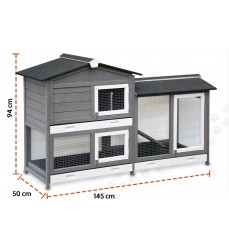 Krásna dizajnová králikáreň s veľkým výbehom v modernom sivom a bielom dizajne. Vhodná do bytu, domu aj na vonkajšie použitie. V hornej časti sa nachádza pohodlný domček s priehradkou zaručujúci úkryt pre pokojný spánok a odpočinok vašich domácich miláčikov. V spodnej časti je veľký výbeh, ktorý zaručuje dostatok pohybu. Je vhodný pre králiky, morčatá a iné zvieratá. S touto králikárňou zabezpečíte, že o vaše zvieratá bude postarané a budú spokojné.