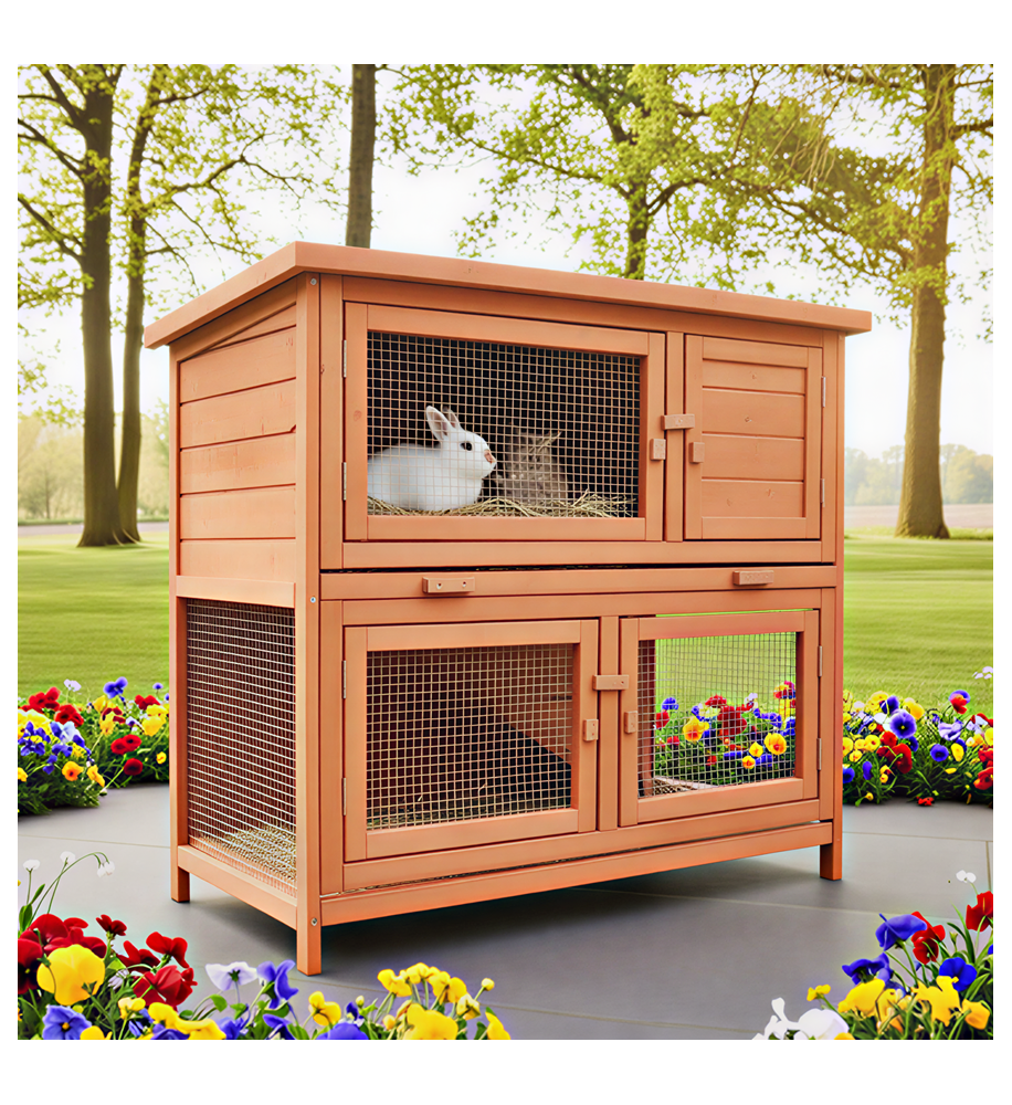 - dizajnová králikáreň s veľkým vonkajším výbehom v hnedej farbe