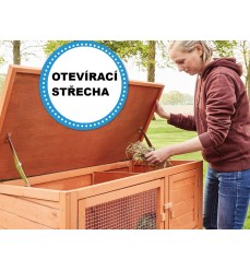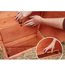 Dvoje dvierka vo výbehu vám zabezpečia prístup do každého kúta. Do domčeka vedie široká drevená rampa, ktorú možno napríklad v noci zavrieť, aby boli vaše zvieratá v bezpečí a v teple. Domček má tiež dvoje otváracích dverí a tiež otváraciu strechu, takže sa ľahko dostanete do každého kúta.