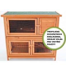 Krásna dizajnová králikáreň s veľkým výbehom v modernom dizajne. Vhodná do bytu, domu aj na vonkajšie použitie. V hornej časti je pohodlný domček s priehradkou zaručujúci úkryt pre pokojný spánok a odpočinok vašich domácich miláčikov. V spodnej časti je veľký výbeh, ktorý zaručuje dostatok pohybu. Je vhodný pre králiky, morčatá a iné zvieratá. S touto králikárňou zabezpečíte svojim zvieratám starostlivosť a spokojnosť.