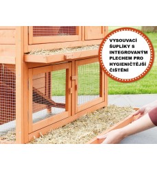- dvoje dverí do výbehu a dvoje dverí do domčeka zabezpečujú ľahký prístup do každého kúta